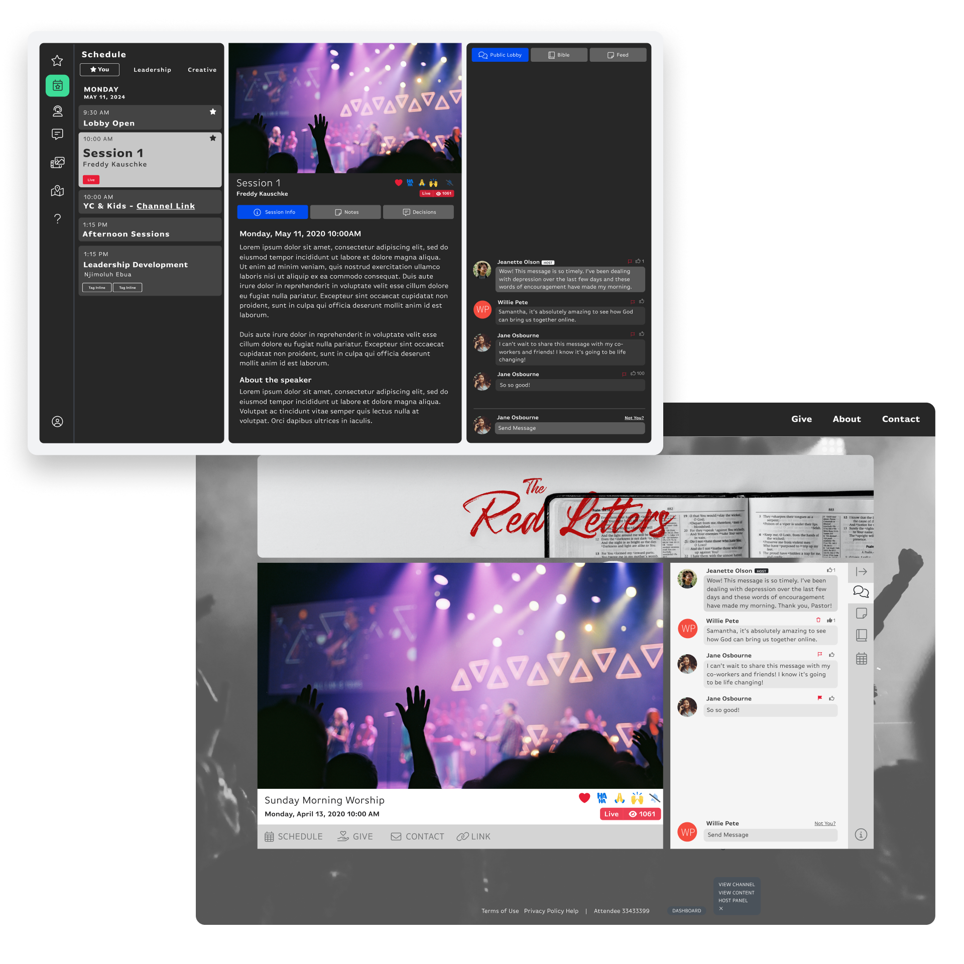 As a response to the 2020 pandemic, the team rallied to create an online experience as we saw the event landscape shifting at light speed. We created a way to host events virtually while maintaining a level of connectivity and customization unmatched by products on the market at the time.